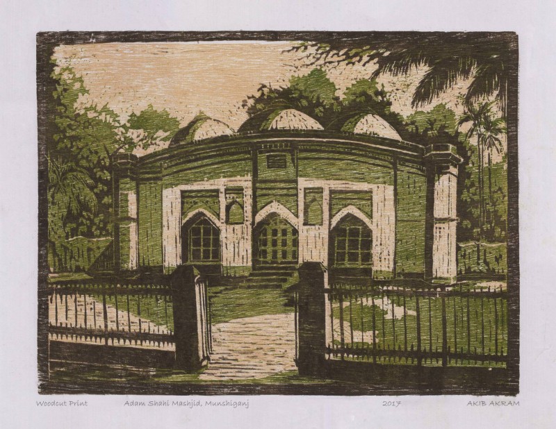 Adam Shahi Mosque in Munshiganj Woodcut 2017 March 28th, 2025 04:00 AM Media: Woodcut PrintSize: 12x16 inYear: 2017