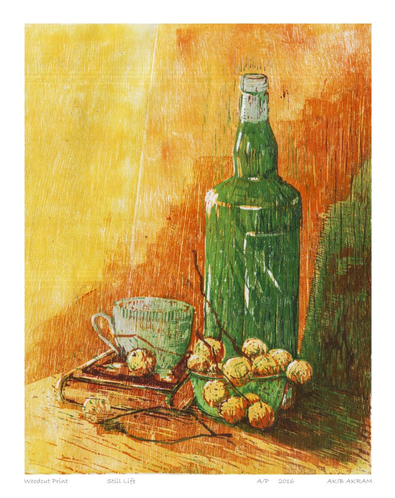 Food, Book and Bottle Woodcut Print 2016 October 27th, 2023 10:50 AM Media: Woodcut PrintDimension: 12x16 inYear: 2016