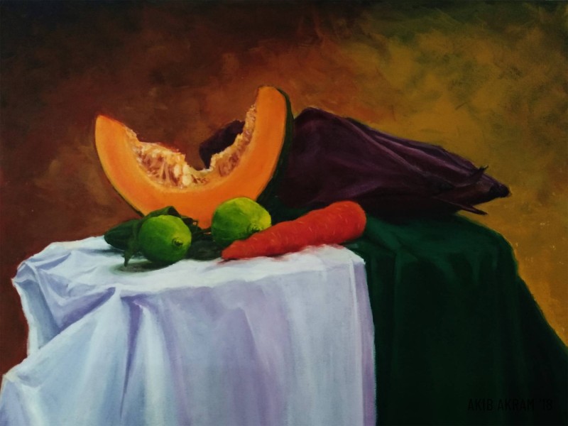 Vegetables on Table ’18 March 28th, 2025 05:09 PM 2018_Acrylic on Canvas_24x30_in_Vegetables on table